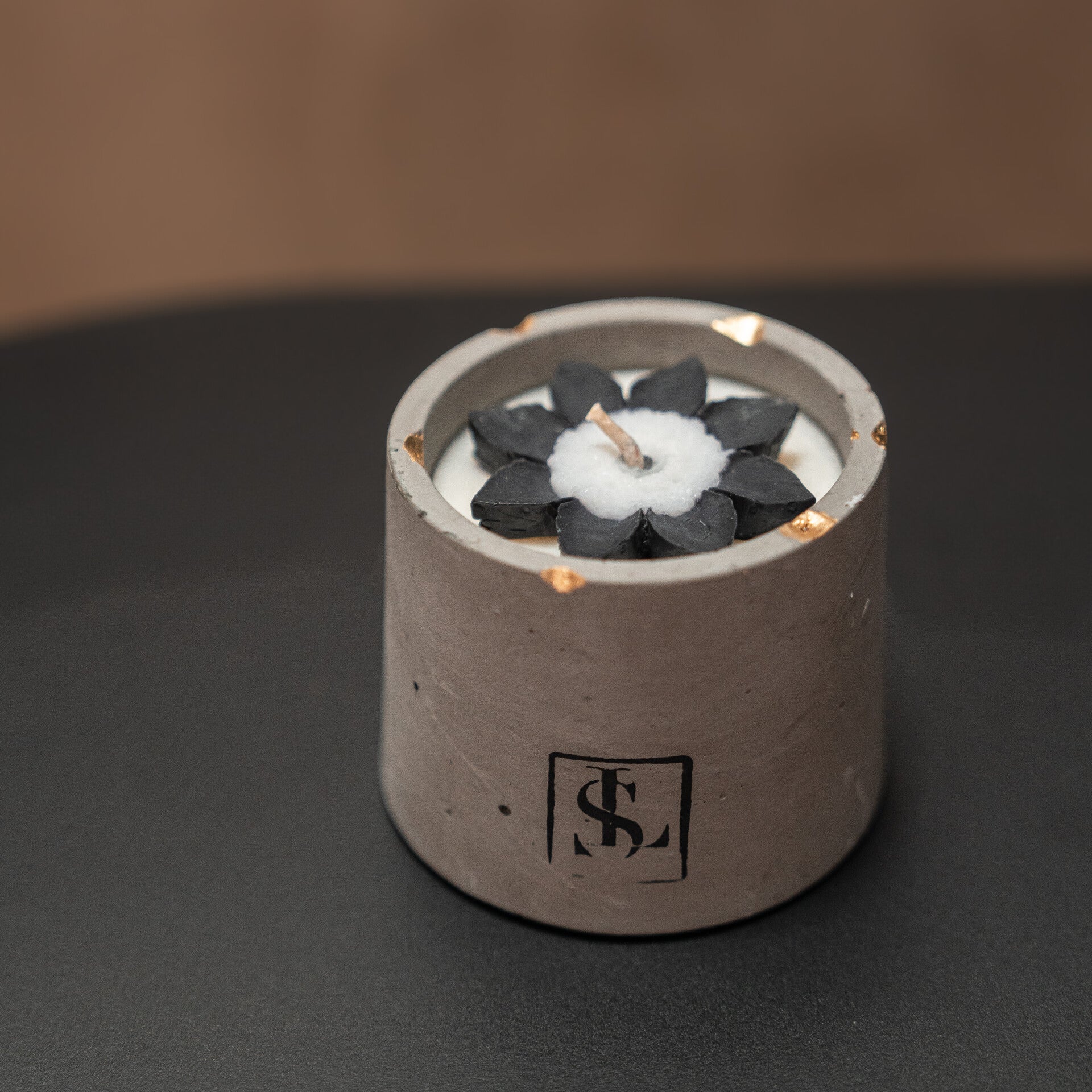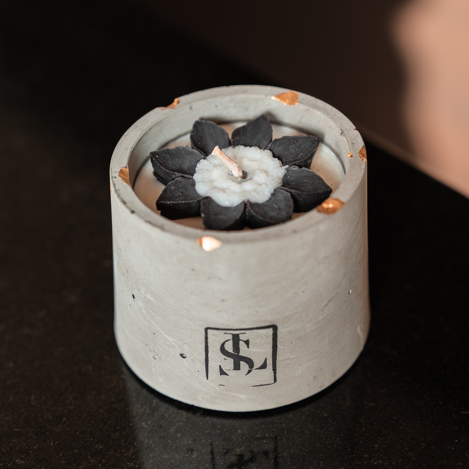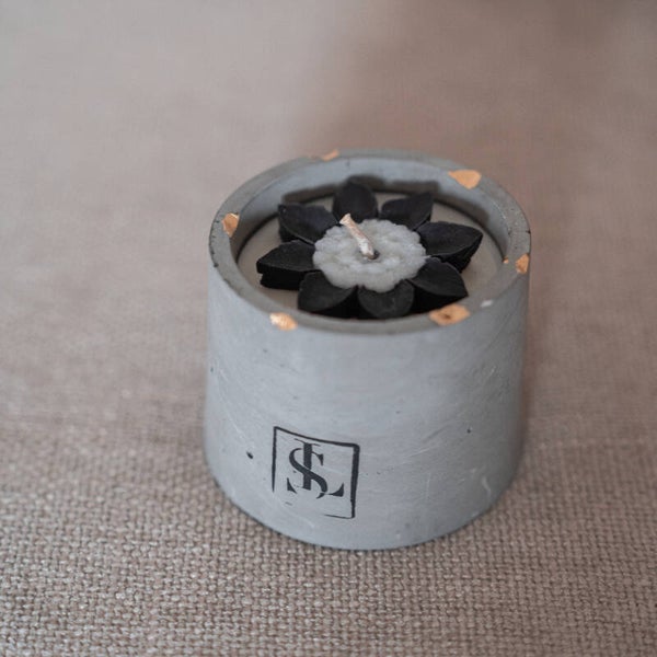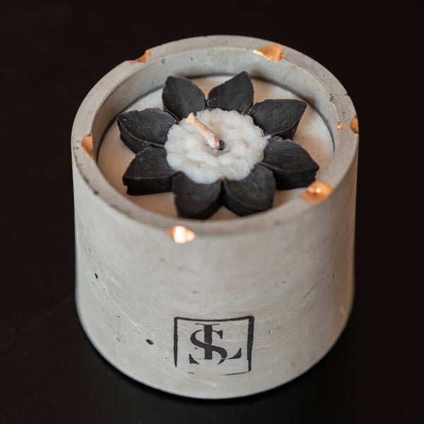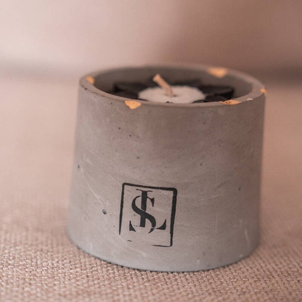 Onse betonnen potten zijn handgemaak en gevuld met soywas en katoenen lonten.