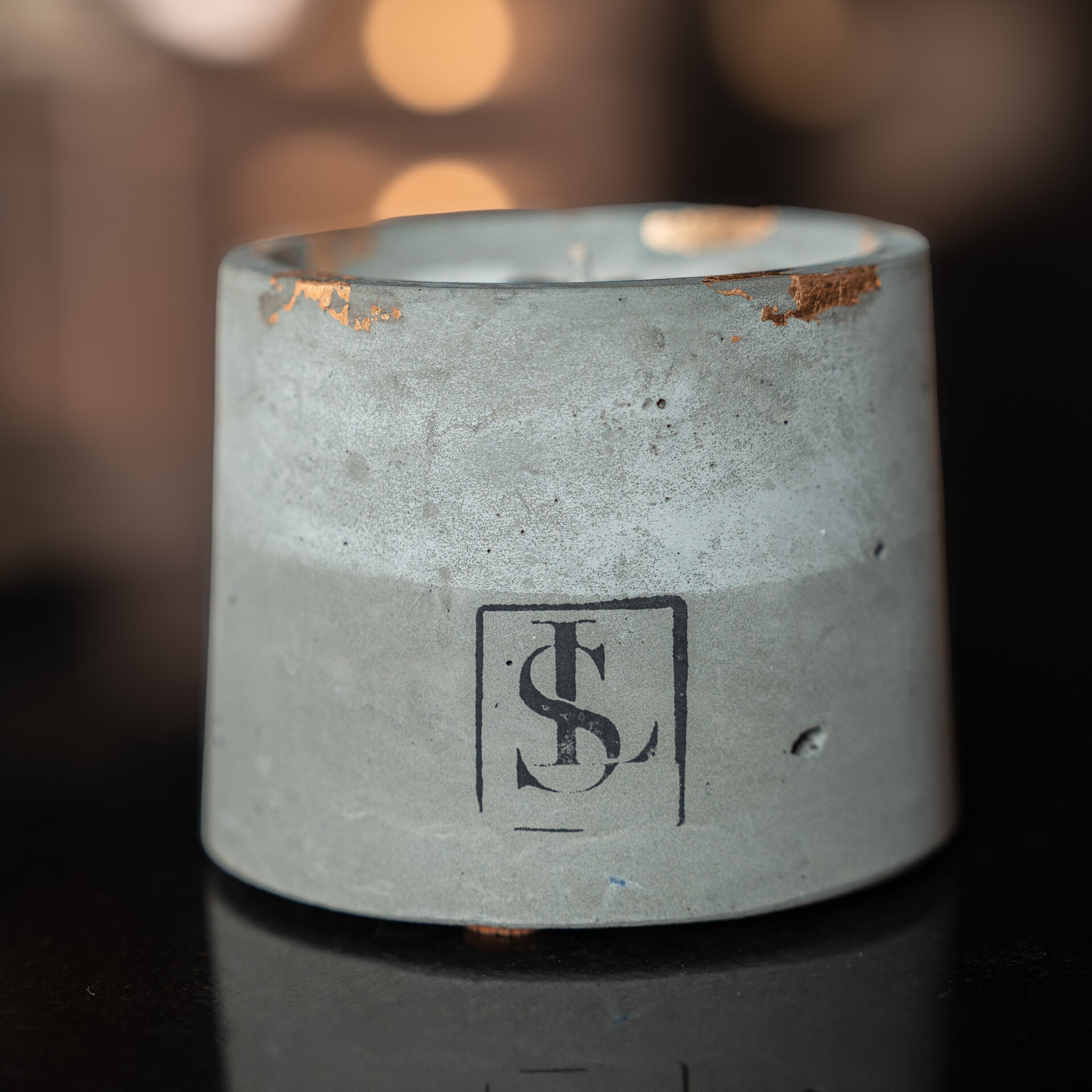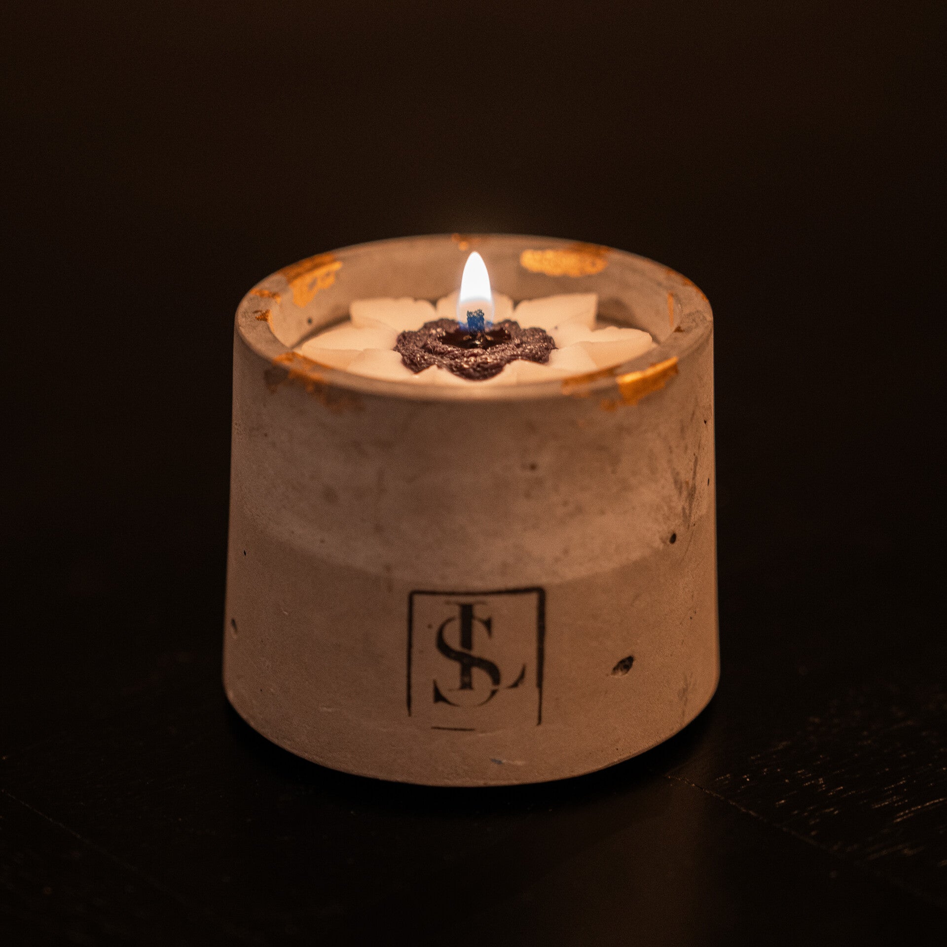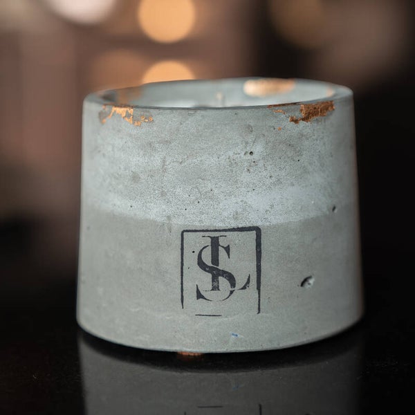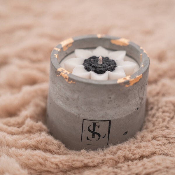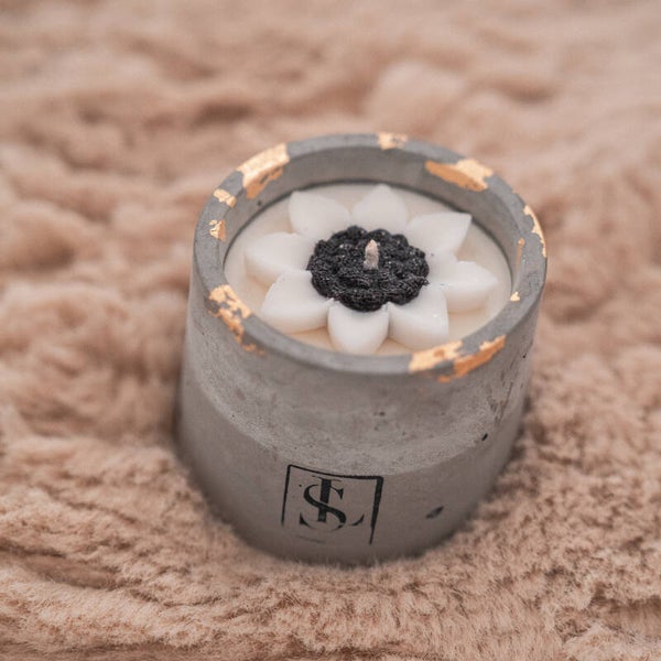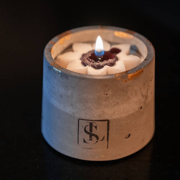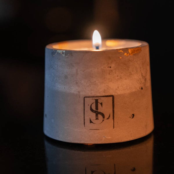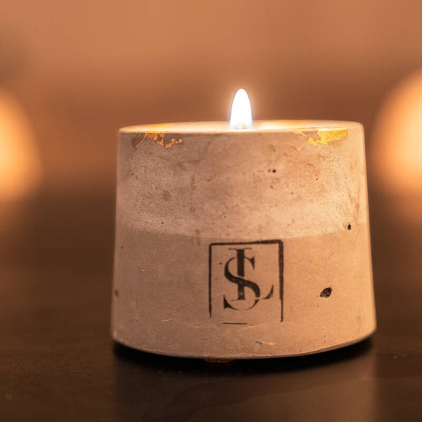 Onse betonnen potten zijn handgemaak en gevuld met soywas en katoenen lonten.