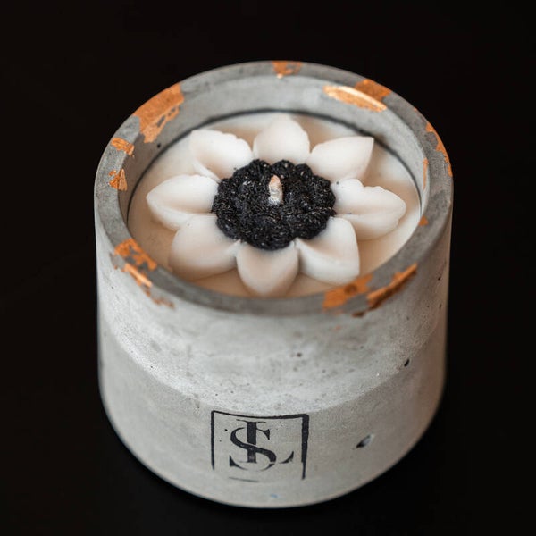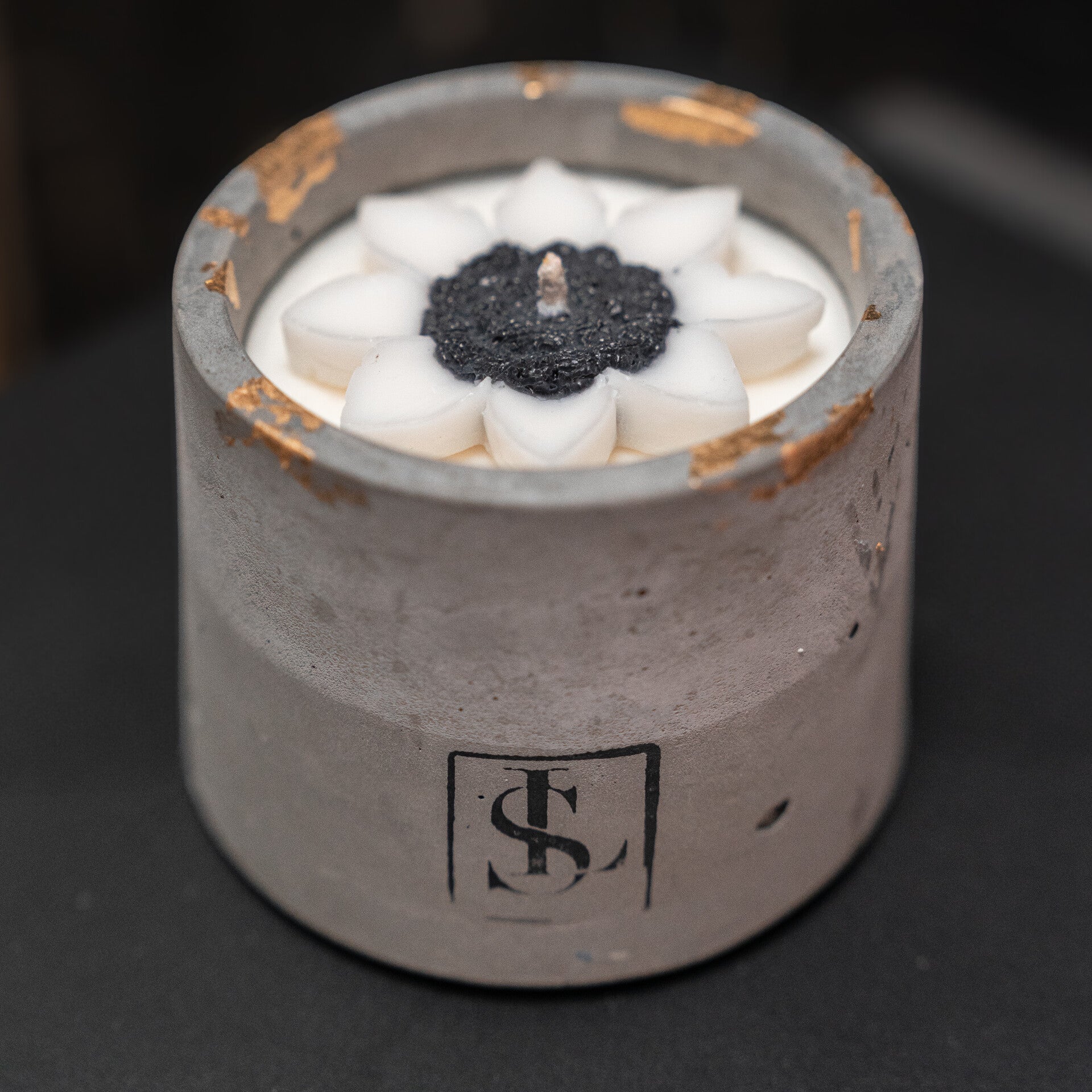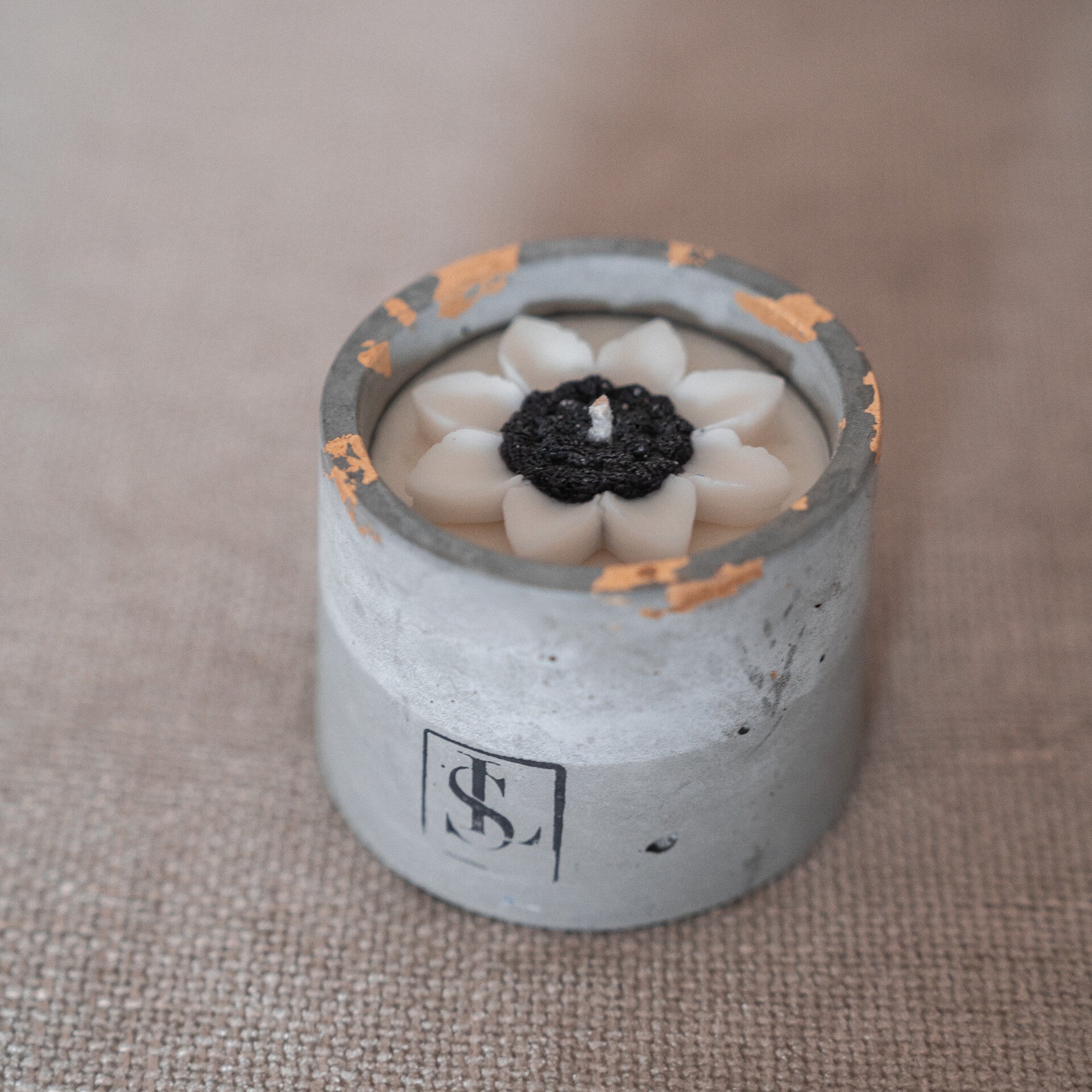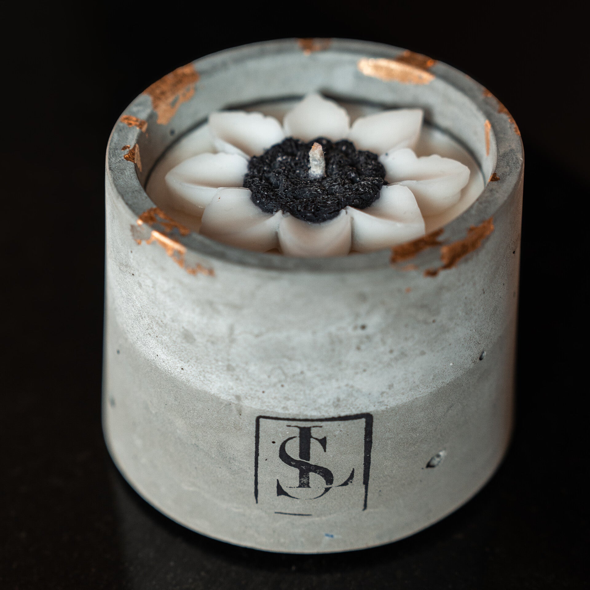 Onse betonnen potten zijn handgemaak en gevuld met soywas en katoenen lonten.