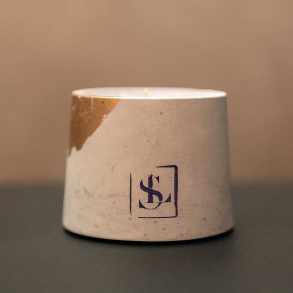 Onse betonnen potten zijn handgemaak en gevuld met soywas en katoenen lonten.