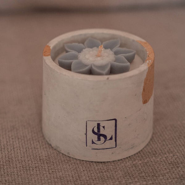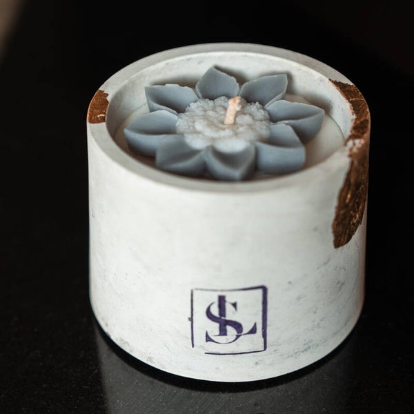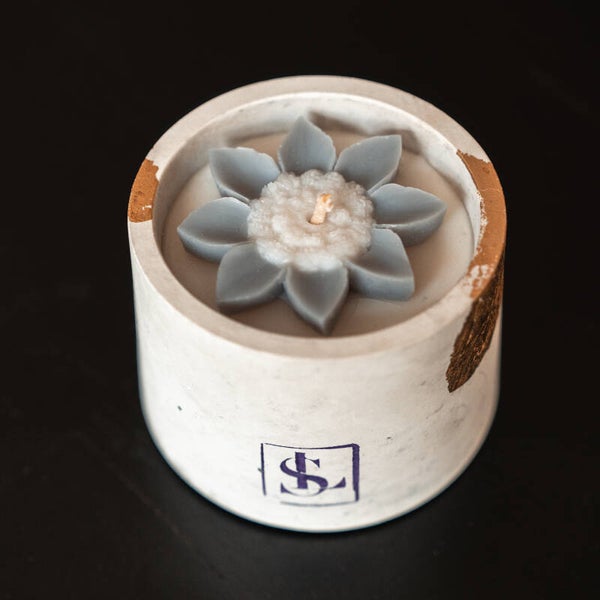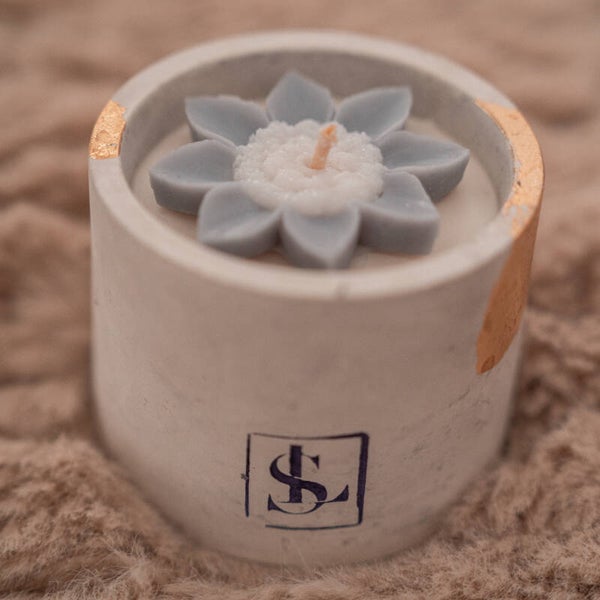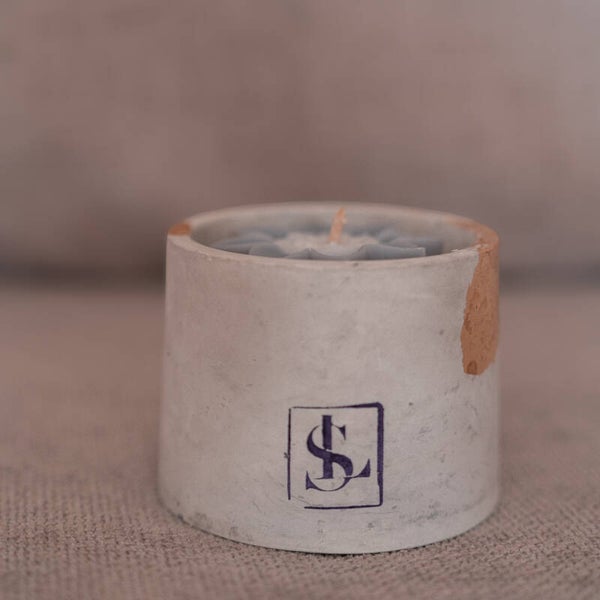 Onse betonnen potten zijn handgemaak en gevuld met soywas en katoenen lonten.