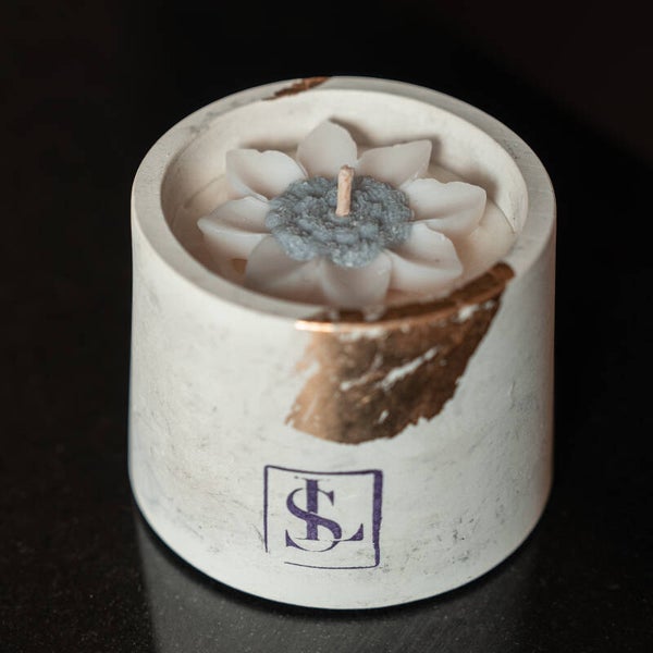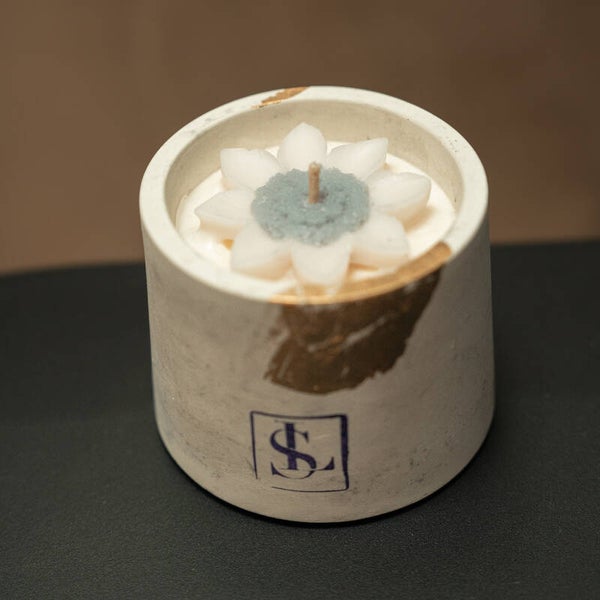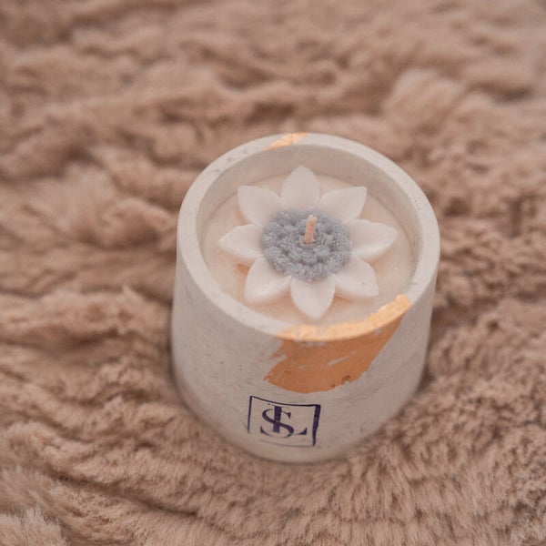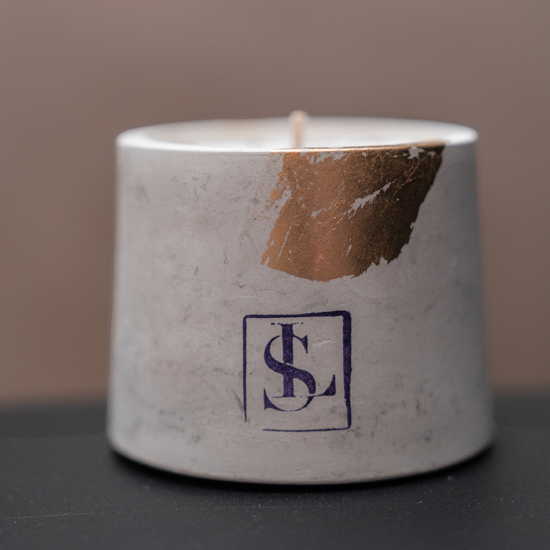Onse betonnen potten zijn handgemaak en gevuld met soywas en katoenen lonten.